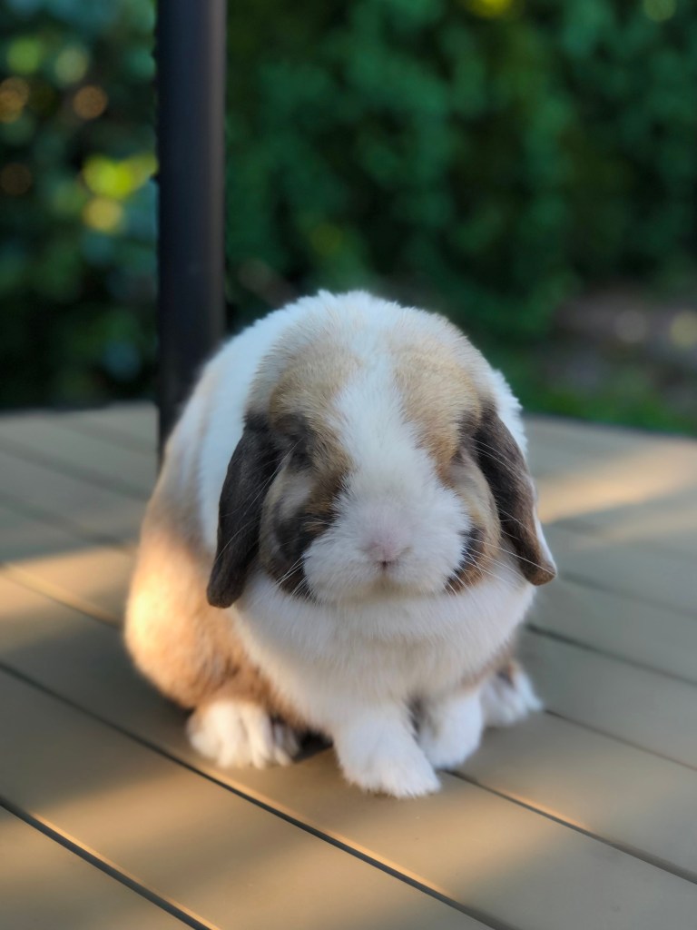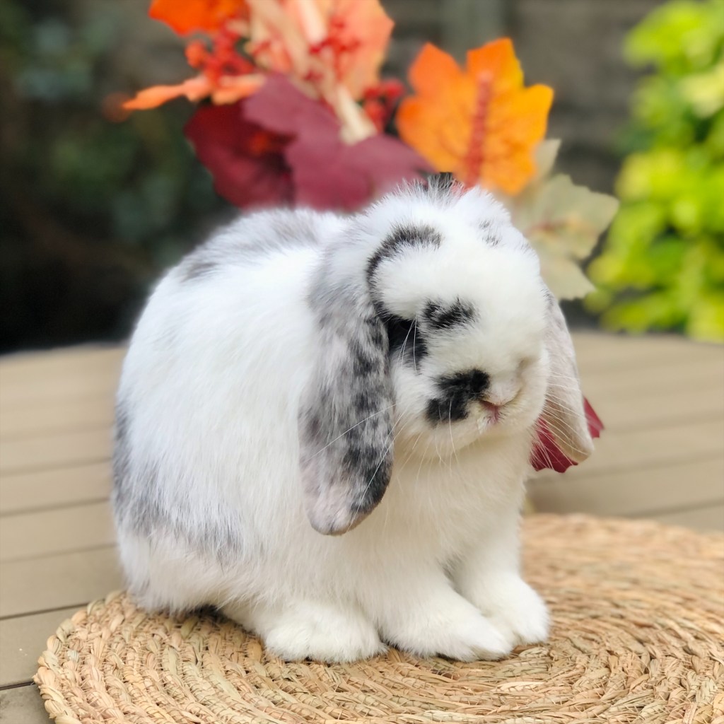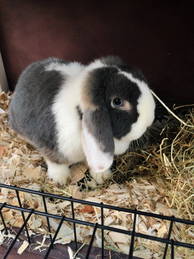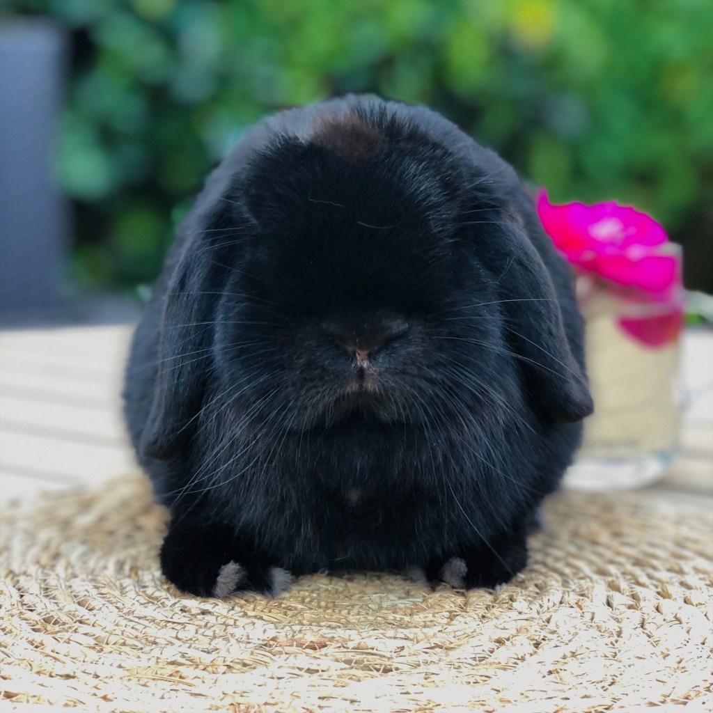 This is Olive, Ginger’s sister! One of my first mini lops was a black doe named Betty, and when this girl popped up I couldn’t resist keeping her. She is a chocolate and dilute carrier with the potential to produce harlequin and shaded babies too!
